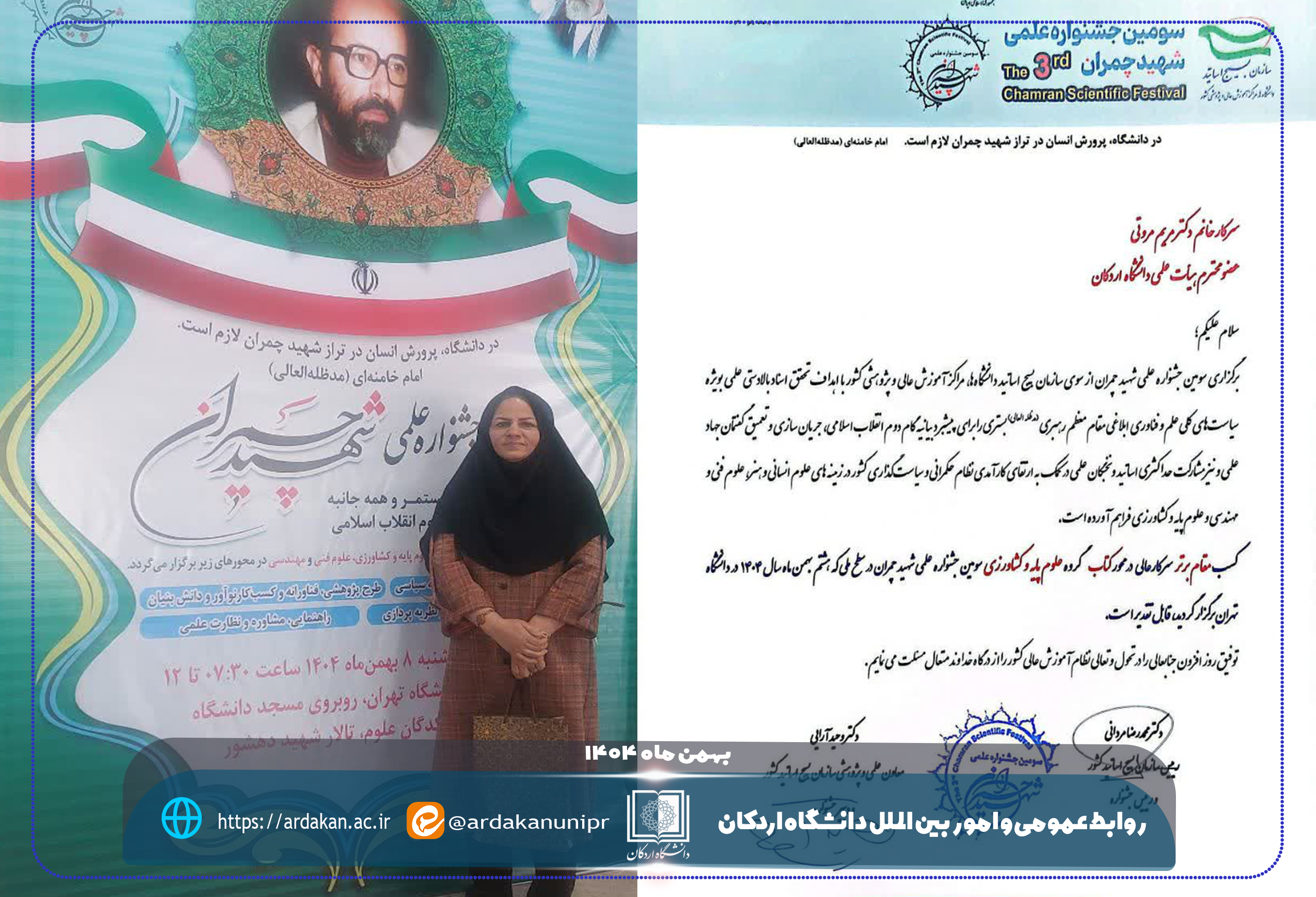درخشش عضو هیأت علمی دانشگاه اردکان در سومین جشنواره علمی شهید چمران
